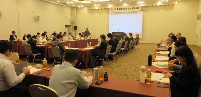 2025年10月10日(金)、三重県四日市市のプラトンホテル四日市にて、「第47回東海北陸生協行政合同会議」が開催されました。本会議は、東海北陸6県の行政と生協が一堂に会し、相互理解と連携を深めることを目的に毎年開催されているものです。今年度は三重県生協連が幹事県を務め、52名が参加しました。