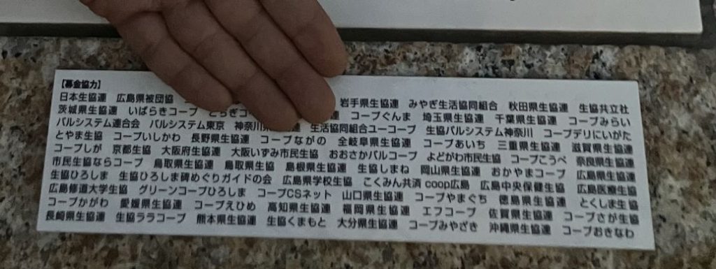 全国78生協(連)から約900万円の募金が寄せられたそうです。第11号碑の説明文に、協力した生協名が記載されています。